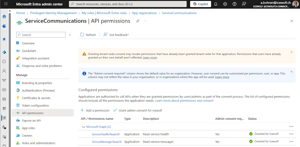 I’ve written a simple Script for Monitoring the M365 Services via the Health und Communications API.