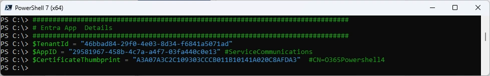 # $AppID = "29581967-458b-4c7a-a4f7-03fa440c0e13" #ServiceCommunications