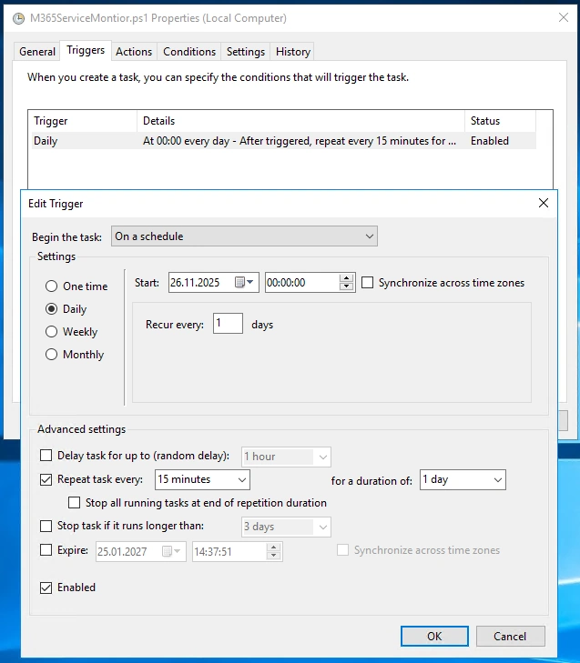 The whole Script can be found on my Github Repo M335ServiceMonitor.ps1