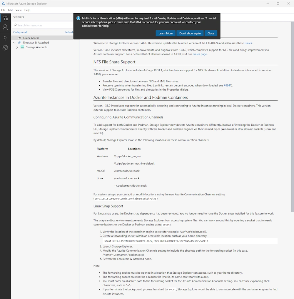 Today i’ve seen the notification, that Azure Storage Explorer 1.41.0 has been released.
