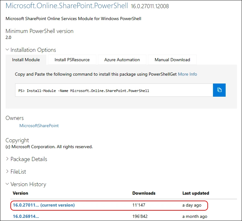A day ago, Microsoft has released the Microsoft.Online.SharePoint.PowerShell 16.0.27011.12008 PowerShell Module.