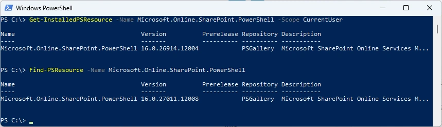 Get-InstalledPSResource -Name Microsoft.Online.SharePoint.PowerShell -Scope CurrentUser