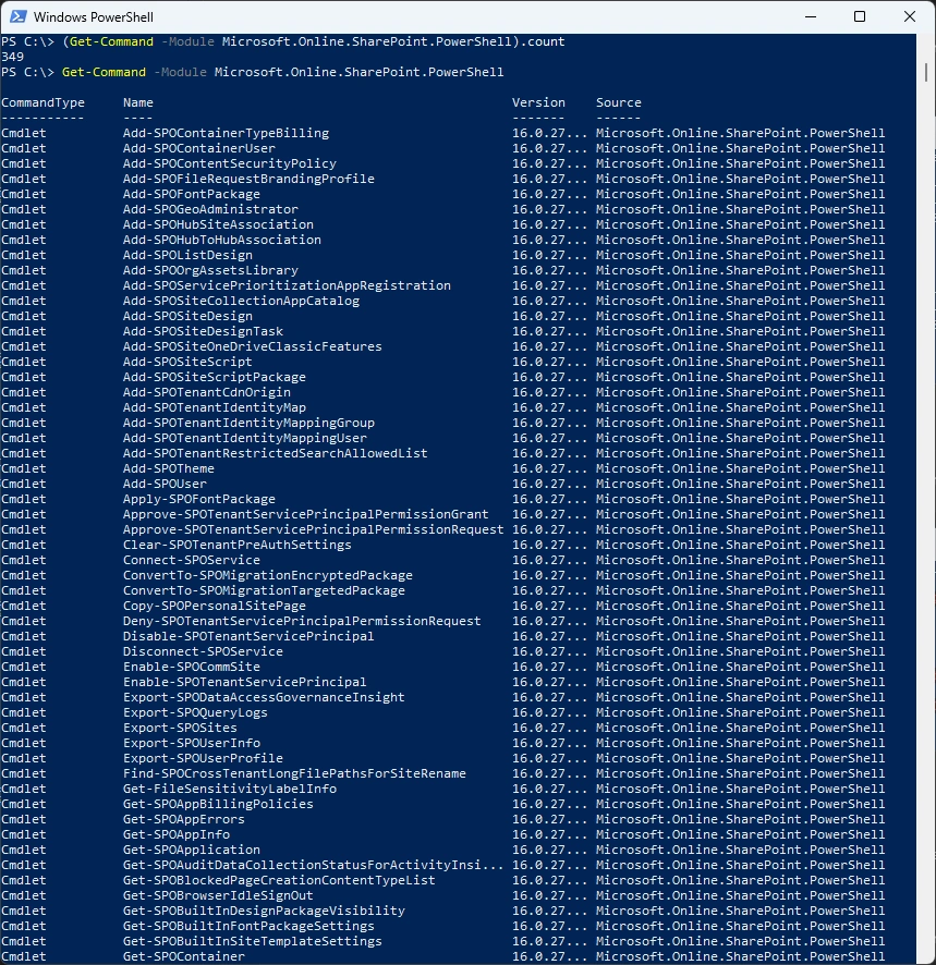 (Get-Command -Module Microsoft.Online.SharePoint.PowerShell).count