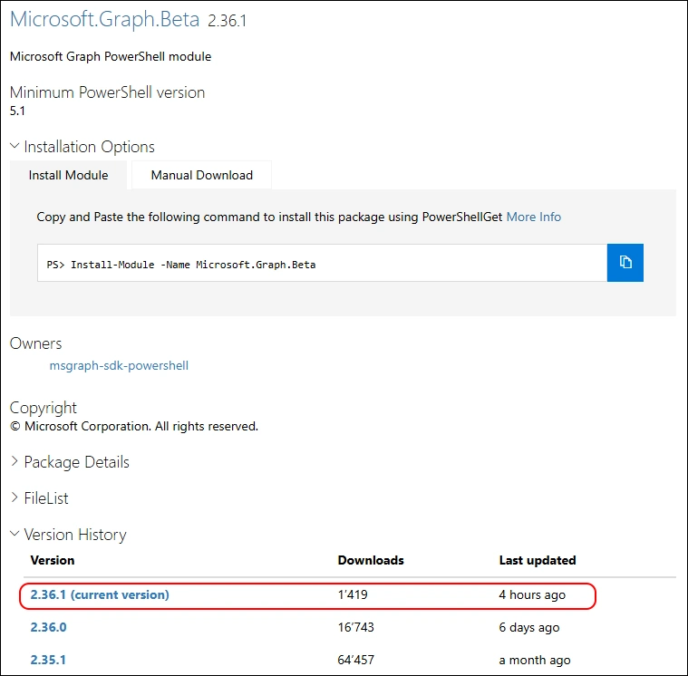 - PowerShell Gallery Microsoft.Graph 2.36.1