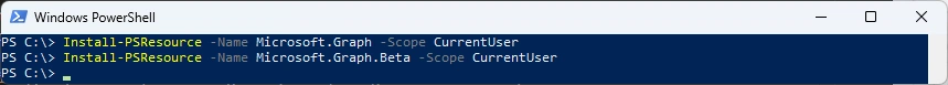 Install-PSResource -Name Microsoft.Graph -Scope CurrentUser