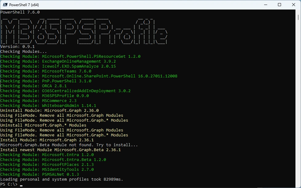 Or you can simply use my M365PSProfile Module - find the Documentation here: GitHub Documentation
