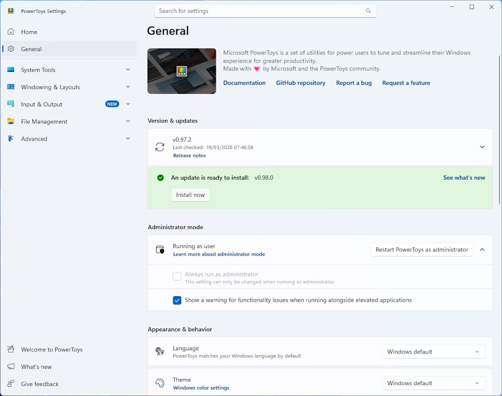 PowerToys v0.98.0 released