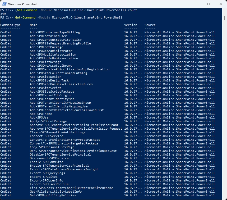 (Get-Command -Module Microsoft.Online.SharePoint.PowerShell).count