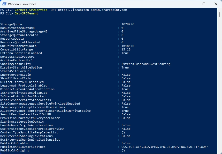 Connect-SPOService -Url https://icewolfch-admin.sharepoint.com
