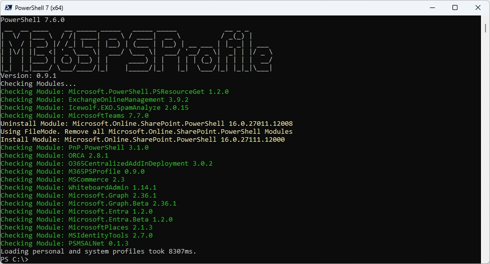 Or you can simply use my M365PSProfile Module - find the Documentation here: https://github.com/fabrisodotps1/M365PSProfile/