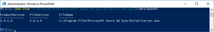 (Get-Item "C:\Program Files\Microsoft Azure AD Sync\Bin\miiserver.exe").VersionInfo