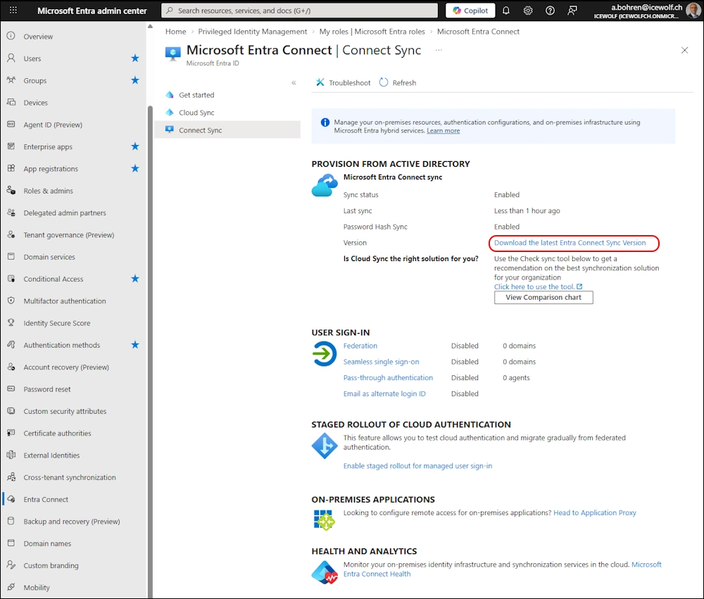 Or go to the Entra Admin Portal and find it there Entra Admin Center > Identity > Entra Connect > Entra Connect Sync Download the latest Entra Connect Sync Version