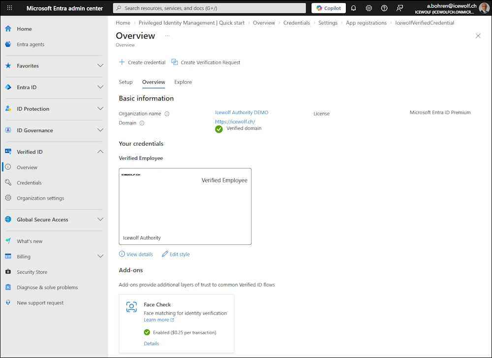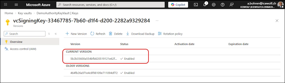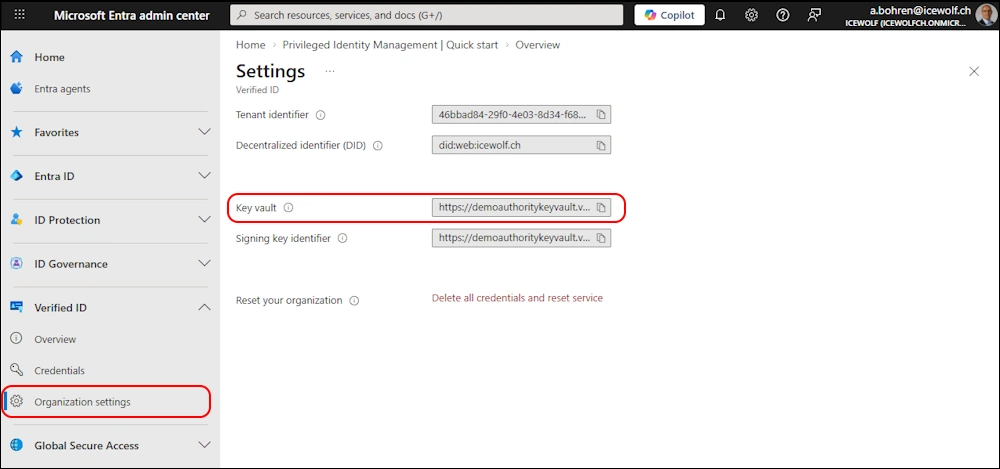 I have used Verified ID Advanced Setup, so the signin Key is in Azure Keyvault